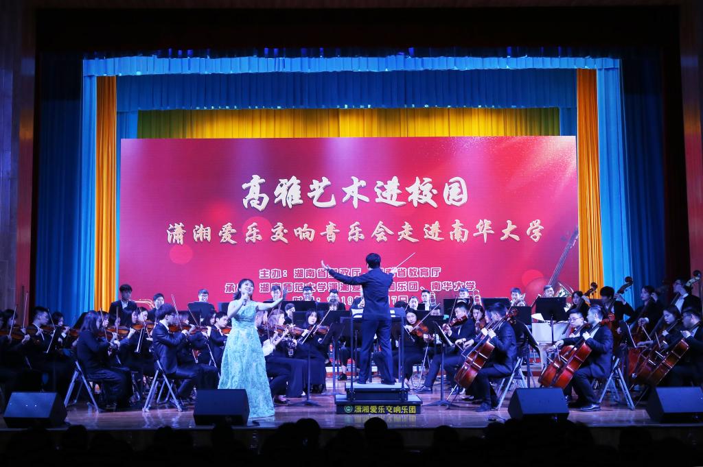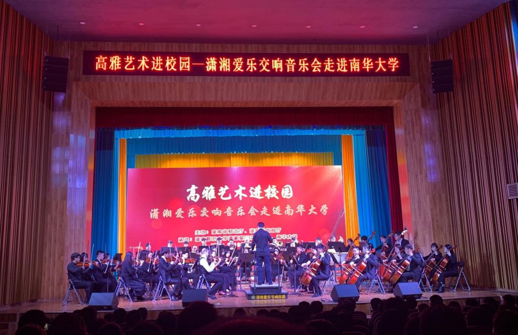 11月7日晚,高雅艺术进校园潇湘爱乐交响音乐会南华大学专场在红湘校区学术报告厅举办。本次音乐会由由湖南财政厅和湖南教育厅主办,湖南师范大学潇湘爱乐交响乐团、南华大学承办,旨在提升我校校园文化品位、丰富学子校园文化生活,促进我校学子德智体美劳全面发展。副校长何旭娟及学校800余名师生代表共同欣赏了此次音乐盛宴。