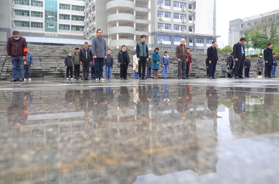 4月4日上午10时,南华大学举行悼念仪式。全体值班教职工齐聚南华广场,默哀三分钟,向抗击新冠肺炎疫情英勇牺牲的烈土和不幸逝世的同胞表示沉痛哀悼。
