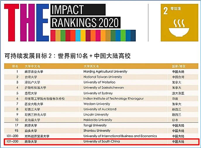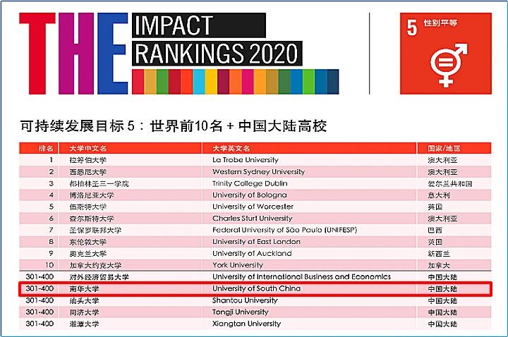 南华大学荣登2020年泰晤士高等教育世界大学影响力排名榜