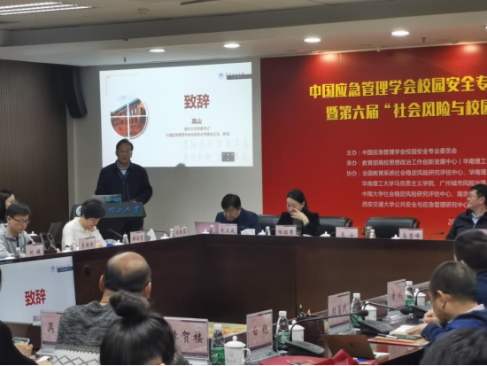 12月27日,中国应急管理学会校园安全专业委员会第五次年会暨第六届“社会风险与校园安全”高端论坛会议在华南理工大学成功举行。本次会议由中国应急管理学会校园安全专业委员会主办,教育部高校思想政治工作创新发展中心(华南理工大学)承办,全国教育系统社会稳定风险研究评估中心、广州城市风险治理与应急管理中心、中南大学社会稳定风险研究评估中心、南京大学社会风险与公共危机管理研究中心、西安交通大学公共安全与应急管理研究中心协办。