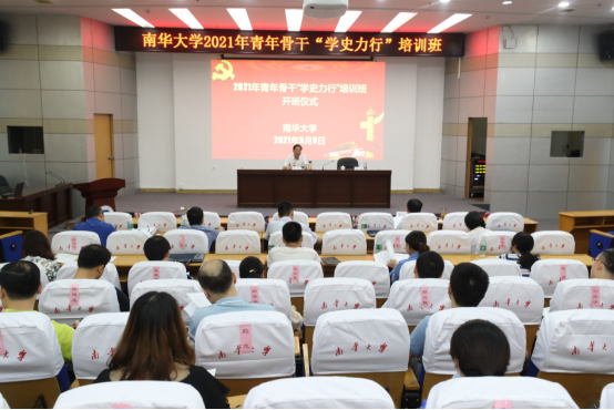 南华大学2021年青年骨干“学史力行”培训班全体学员参加开班仪式。