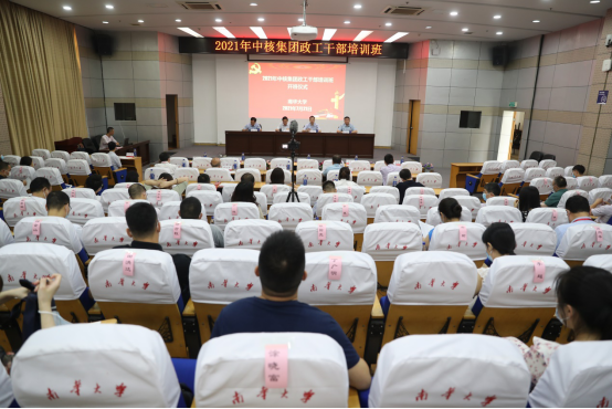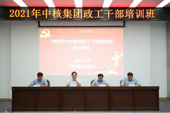 为进一步深入推进党史学习教育,深入学习贯彻习近平总书记“七一”重要讲话精神,加强和改进核工业系统思想政治工作,7月20日-7月24日,中核集团首期政工干部培训班在我校举行。中国核工业集团公司党群工作部副部长朱向军,核工业湖南矿冶局党委书记、局长宋克祥,南华大学党委委员、副校长雷小勇等出席开班仪式。开班仪式由朱向军主持。