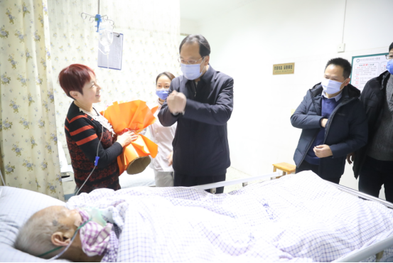 “你们在哪里过年?感谢你们的坚守!我给大家拜年了!”高山一行分别来到附属第一医院、附属第二医院、附属南华医院,现场督察各附属医院的疫情防控工作,走访慰问急诊科、门诊大厅、发热门诊、核酸采集处的一线医务工作者和“衡阳群众”志愿者,为他们送上新年祝福和慰问品,由衷感谢他们的辛苦付出。在附属第一医院,高山一行还实地查看了重大疫情救治基地建设情况,走访慰问了99岁离退休老同志牛宝山。在附属第二医院,高山一行在校纪委书记刘杏花的陪同下,走访慰问了离退休老同志阮婉玉。