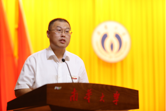 省高校青年教师讲课比赛一等奖获得者,土木工程学院彭楚澌作教师代表发言。她分享了在教学之路成长的体会:不断更新教育教学理念,用最新理念来引领课堂教学;积极参加各级教学竞赛,锤炼教学基本功;积极参与指导学科竞赛,做到教学相长。她表示将继续做好学业指导和教研科研工作,在教学工作的最基层,做好学生全面健康成长的引路人,以昂扬向上的精神面貌和立德树人的扎实行动,迎接党的二十大胜利召开,为南华跻身国家双一流高校行列贡献自己的青春和力量。