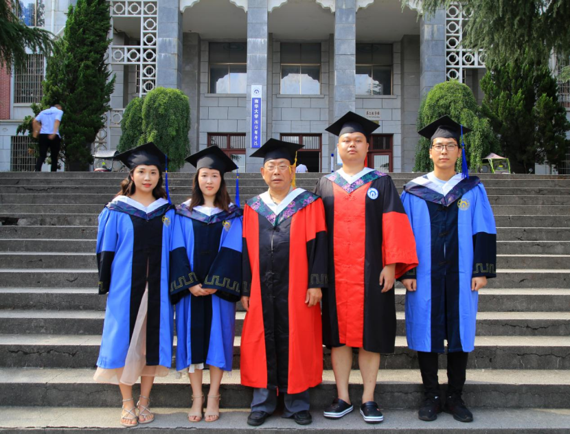 李育萌博士(右二)和导师吴移谋教授(中)合影