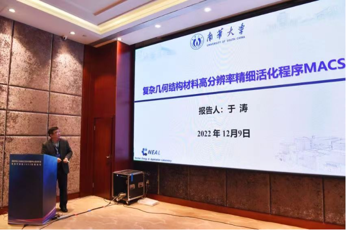 于涛在《复杂几何结构材料高分辨率精细活化程序MACS研发进展》报告中介绍了南华大学针对核反应堆复杂几何结构材料活化源项分析问题自主开发的“模型-输运-活化-剂量” 自动耦合分析程序MACS。该程序实现了对结构材料精细活化分析及衰变γ辐射场的精确评价,可为核反应堆辐射安全设计、停堆换料与检修、退役方案与策略制定提供理论与技术支撑,得到与会专家高度评价。