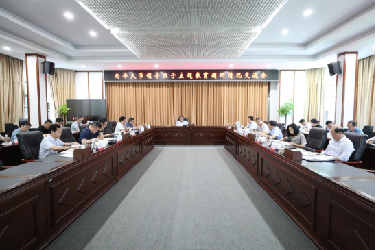 7月11日上午,南华大学领导班子召开主题教育调研情况交流会,深入学习领会习近平新时代中国特色社会主义思想,贯彻落实习近平总书记关于调查研究的重要论述,通报前一阶段领导班子主题教育开展情况,以及“走找想促”活动阶段性调研成果,交流调查研究心得体会,明确下一阶段努力方向,推动调查研究走深走实。校党委书记高山主持会议并讲话。全体在校校领导、党委委员参加会议。