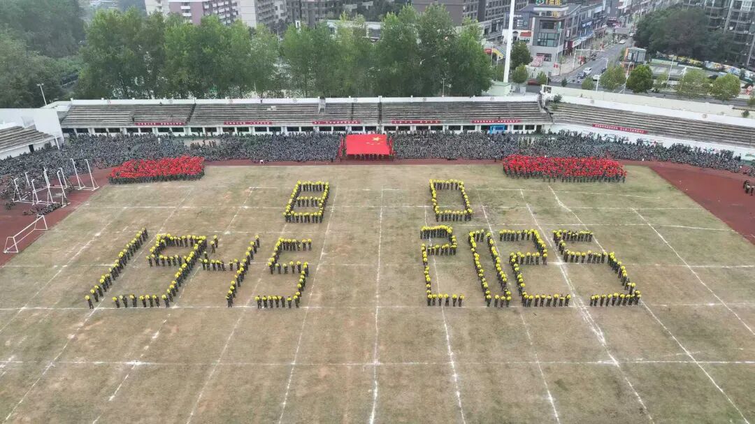 伴随着悠扬的旋律,巨幅国旗从运动场西侧向主席台徐徐行进,1300余名受训新生在操场上不断变换手中的彩扇,摆出“16个同心圆”、“活力南华”、“1958 2025 67”、“1945 2025 80”等文字和数字,庆祝中国人民抗日战争暨世界反法西斯战争胜利80周年、南华大学成立67周年,表达南华学子浓浓的爱党爱国爱校之情。