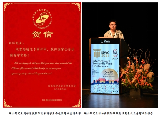 近三年,2023级本科生张静静获批2025年省自然科学基金青年学生基础研究项目,率先在全省实现该领域“零突破”;2022级硕士研究生刘洋获国家公派留学资格,将赴意大利攻读博士学位;2021级硕士研究生任林在国际顶级会议ISWC2023发表论文并作口头报告。此外,学院还获批国家级大学生创新创业训练计划项目10余项、省级70余项,湖南省研究生科研创新项目10余项,学生发表SCI索引及CCF推荐论文50余篇。