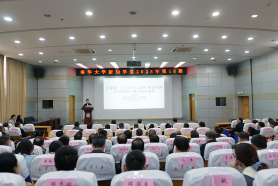 12月10日,南华大学2025年第16期新知学堂在红湘校区图书馆开讲。复旦大学国际关系与公共事务学院沈逸教授以“新篇章:九三阅兵后的中美战略博弈态势国际关系热点解析”为题作学术报告。全体在校校领导参加报告会。党委委员、副校长周青芝主持报告会。