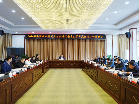 12月16日,南华大学召开2026年全国硕士研究生招生考试南华大学考点组考工作协调会。校长夏昆出席会议并强调,要深入贯彻党中央、国务院关于招生工作的决策部署,严格落实教育部及全省硕士研究生招生考试安全工作会议精神,弘扬求真务实的工作作风,加强协同联动,压实各方责任,强化服务保障,全力实现“平安研考”目标。校党委副书记李乐主持会议。