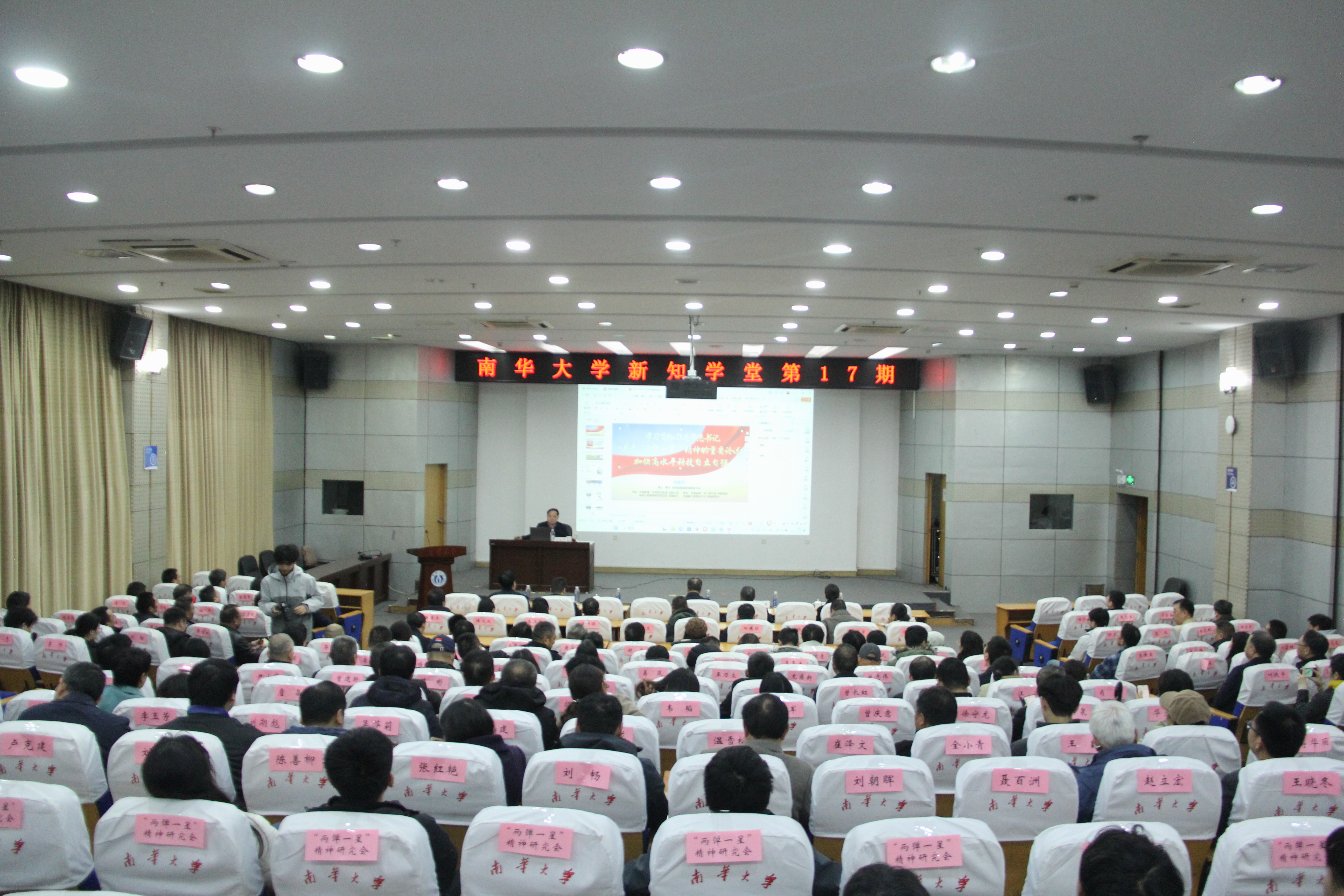 12月23日,南华大学2025年第17期新知学堂在红湘校区图书馆开讲。中国工程物理研究院党校原副校长、博士生导师范植开教授以“学习贯彻习近平总书记关于‘两弹一星’精神的重要论述,加快高水平科技自立自强”为题作学术报告。全体在校校领导参加报告会。党委委员、副校长王利华主持报告会。