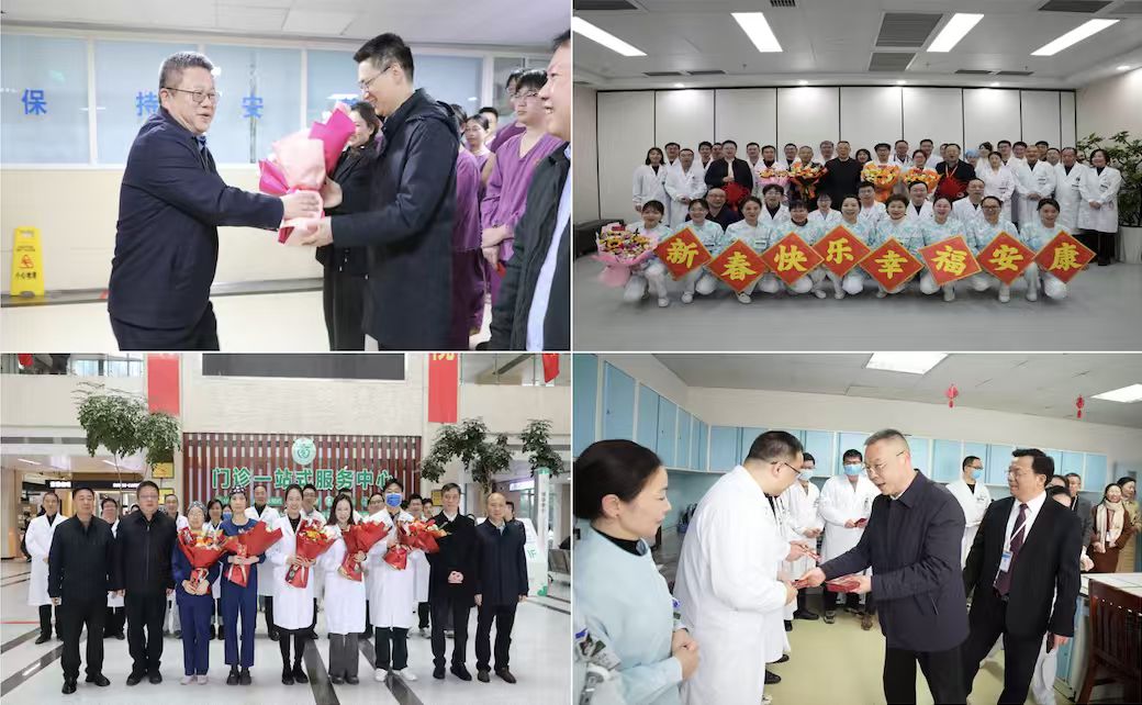 在长沙各附属医院,唐忠阳、夏昆深入各医院临床医技科室、后勤保障部门及医学教育实验楼项目建设工地,看望慰问坚守一线的医务、后勤保障、施工人员及研究生代表,感谢他们为守护人民健康作出的积极贡献,勉励他们在新的一年继续发扬优良作风,不断提升医疗服务水平,扎实做好后勤保障,全力推进有关项目建设,为健康湖南、健康中国建设贡献更多力量。唐忠阳、夏昆还看望慰问了部分援藏援疆专家,感谢他们为增进民族团结、助力当地医疗卫生事业发展作出的贡献,向他们致以节日的祝福,并叮嘱各派出医院持续做好援藏、援疆专家干部关心关爱工作。