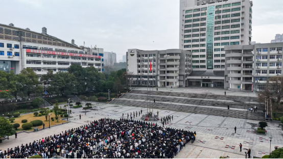 清晨7时许,两校区国旗护卫队迈着铿锵步伐,昂首挺胸护卫五星红旗入场,步伐整齐划一、气势昂扬。雄壮的《义勇军进行曲》奏响,五星红旗冉冉升起、迎风飘扬,全场师生肃立注目,高唱国歌,神情庄重、精神饱满,共同感受新时代青年的使命与担当。