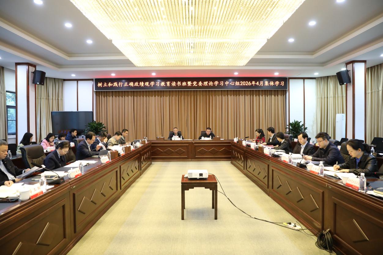 4月23日,南华大学举行树立和践行正确政绩观学习教育读书班暨党委理论学习中心组2026年4月集体学习。校党委书记唐忠阳主持讲话。党委副书记、校长夏昆出席。